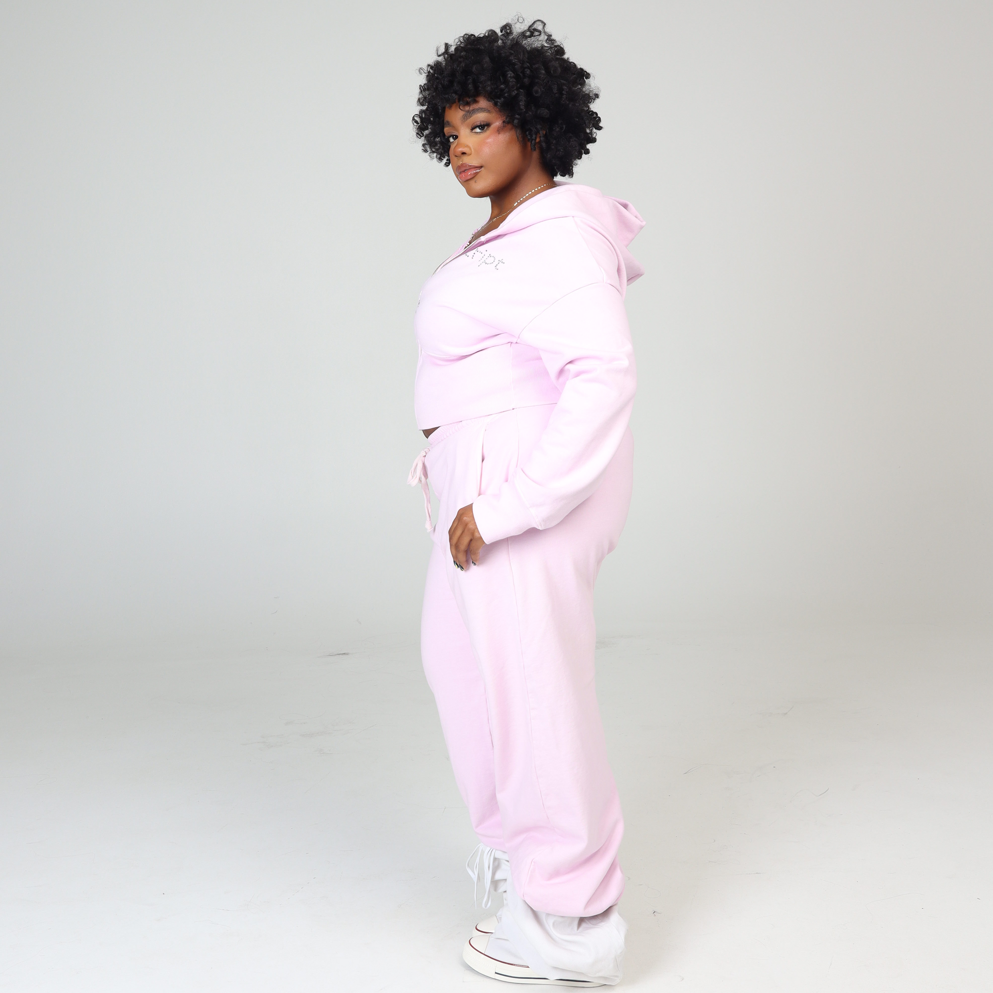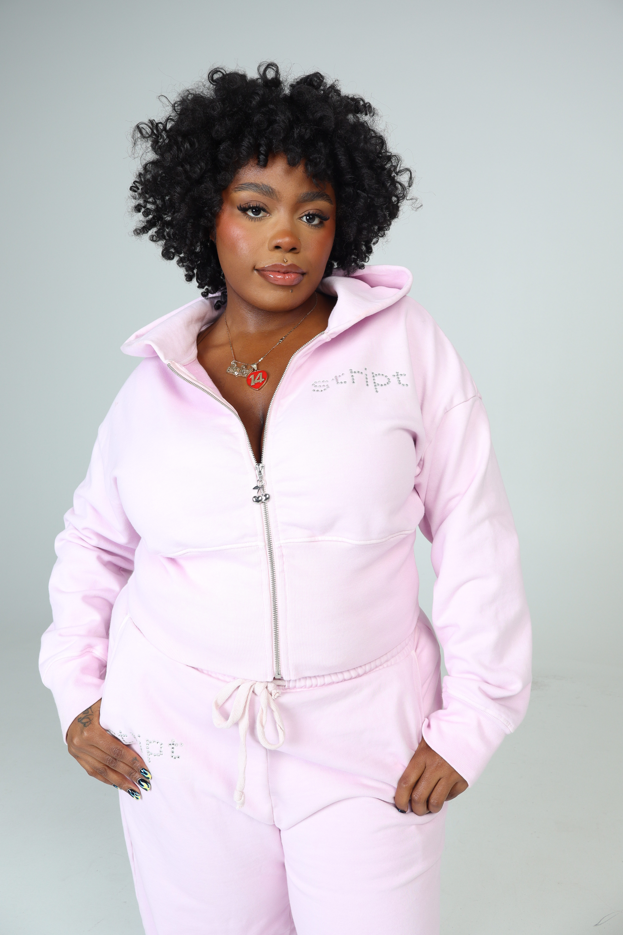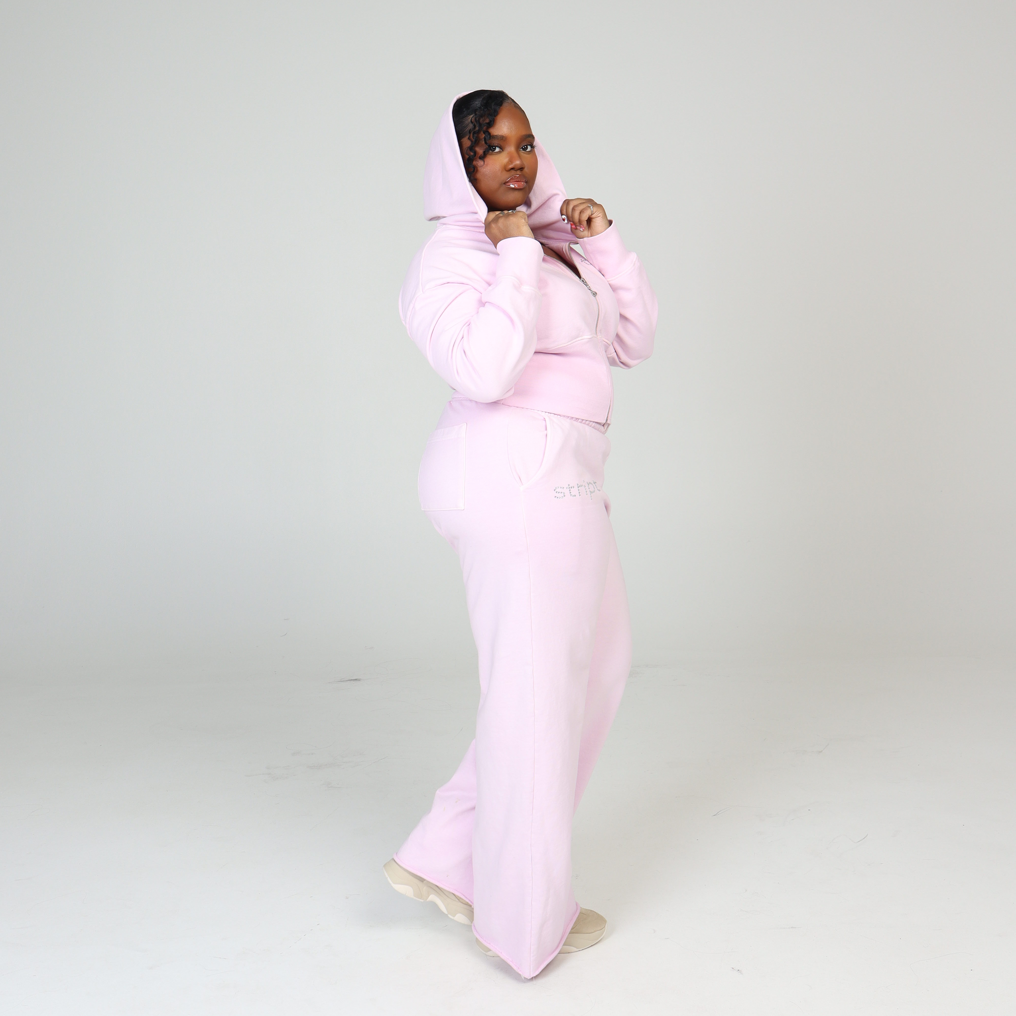 The Baby Pink Corset Hoodie is crafted from 100% premium heavyweight French Terry cotton (460 GSM). It features a fitted silhouette with a sculpted, corset-style waist for a snatched look, ribbed waist detailing to contour and define, and a custom cherry charm zipper pull. Finished with custom rhinestone embellishment spelling out STRIPT across the chest. Dry clean only. We suggest purchasing your typical STRIPT size.